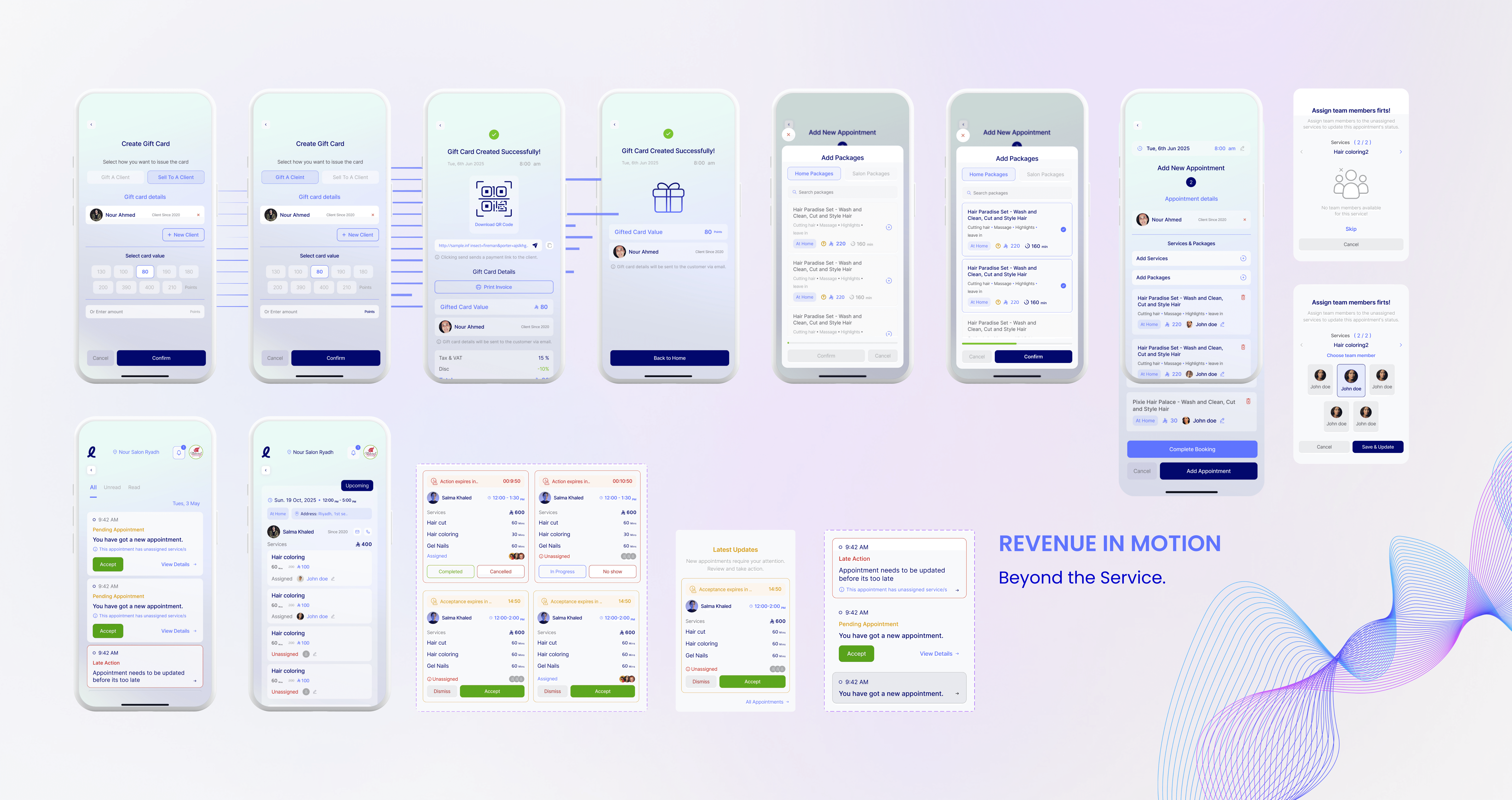 If the consumer app is the dream, the Staff App is the reality. It’s where appointments are fought for, schedules are optimized, and business happens in real-time. I designed this as a High-Utility CRM that lives in the pocket of every team member—built to be used with one hand, in a rush, and with zero room for error.